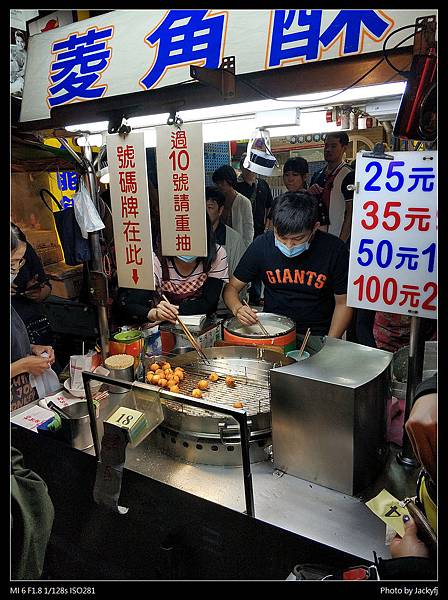 廟東夜市的頭尾都有菱角酥