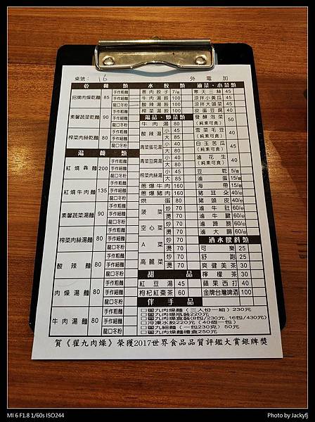 翟九肉燥獲得2017年