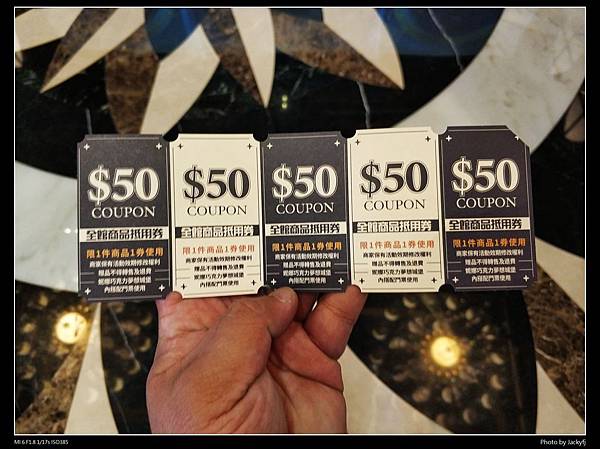 有附贈五張50元的抵用券 但是部分低價商品跟巧克力DIY是不能抵用的