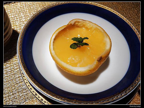 利用柳橙原汁做的果凍 搭配 熱紅茶 很不賴