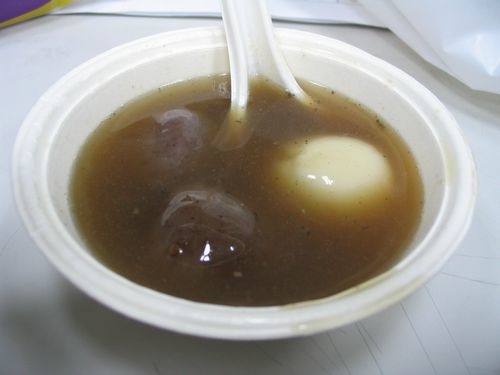 買了 七包桂冠湯圓 一包黑糖 一組碗和湯匙