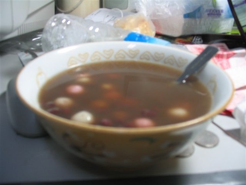 紅豆湯的作法 就和以前一樣 而湯圓也很簡單 就把水煮開 把小湯圓丟進去 大火煮到湯圓浮起來 就可以撈上來了 很間單 有廚房的人可以試試